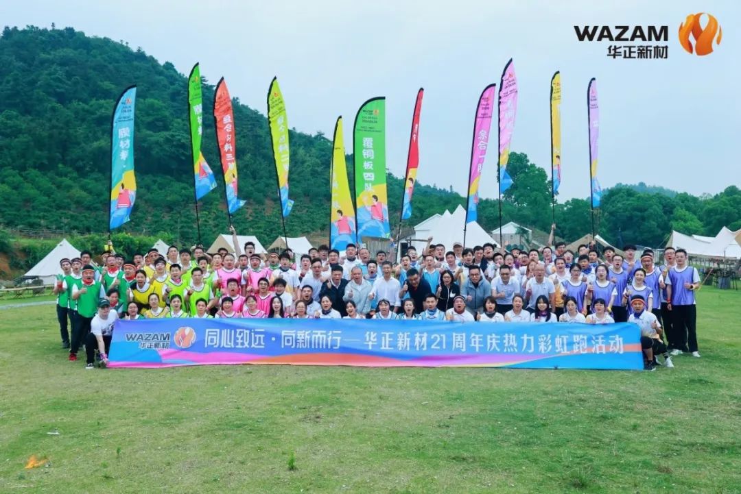 6月6日,華正新材及各子公司聯(lián)動(dòng)舉行主題為“同心致遠(yuǎn),向新而行”的熱力彩虹跑活動(dòng),慶祝華正新材成立21周年。華正新材董事長(zhǎng)劉濤、總裁郭江程、公司高層及110名員工參加了本次活動(dòng)。